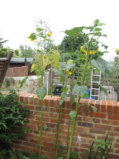 So 7 sunflowers planted in the prime spot, and down to 6 already….. not sure of the cause of death to sunflower 5, perhaps it just broke its stem or it could have been a slug although it didn’t get eaten up even though it was nice and leafy… once…. Just as well Sparky and I have back up sunflowers who will be delighted to gain promotion to a top spot.